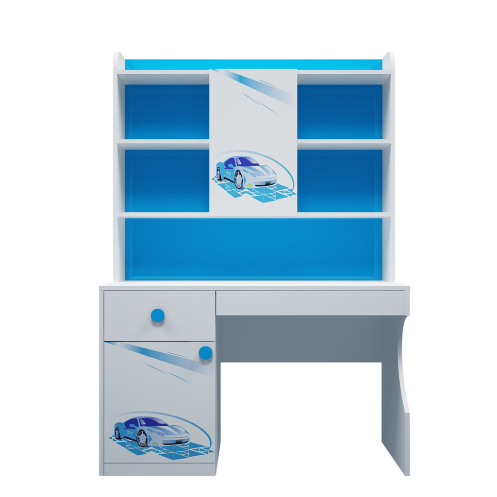 - Ngoài các giá sách, bàn học có tích hợp thêm các ngăn tủ bên dưới để các bé lưu giữ đồ dùng cá nhân. Hệ tủ bao gồm 1 ngăn kéo và 1 hộc 2 ngăn rộng rãi dể các bé để được nhiều đồ dùng gọn gàng và ngăn nắp.