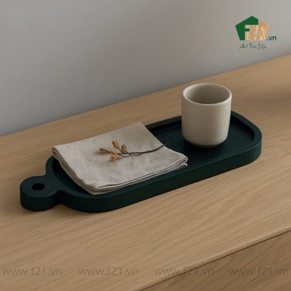 Đĩa chữ nhật gỗ tự nhiên bo tròn có lỗ treo