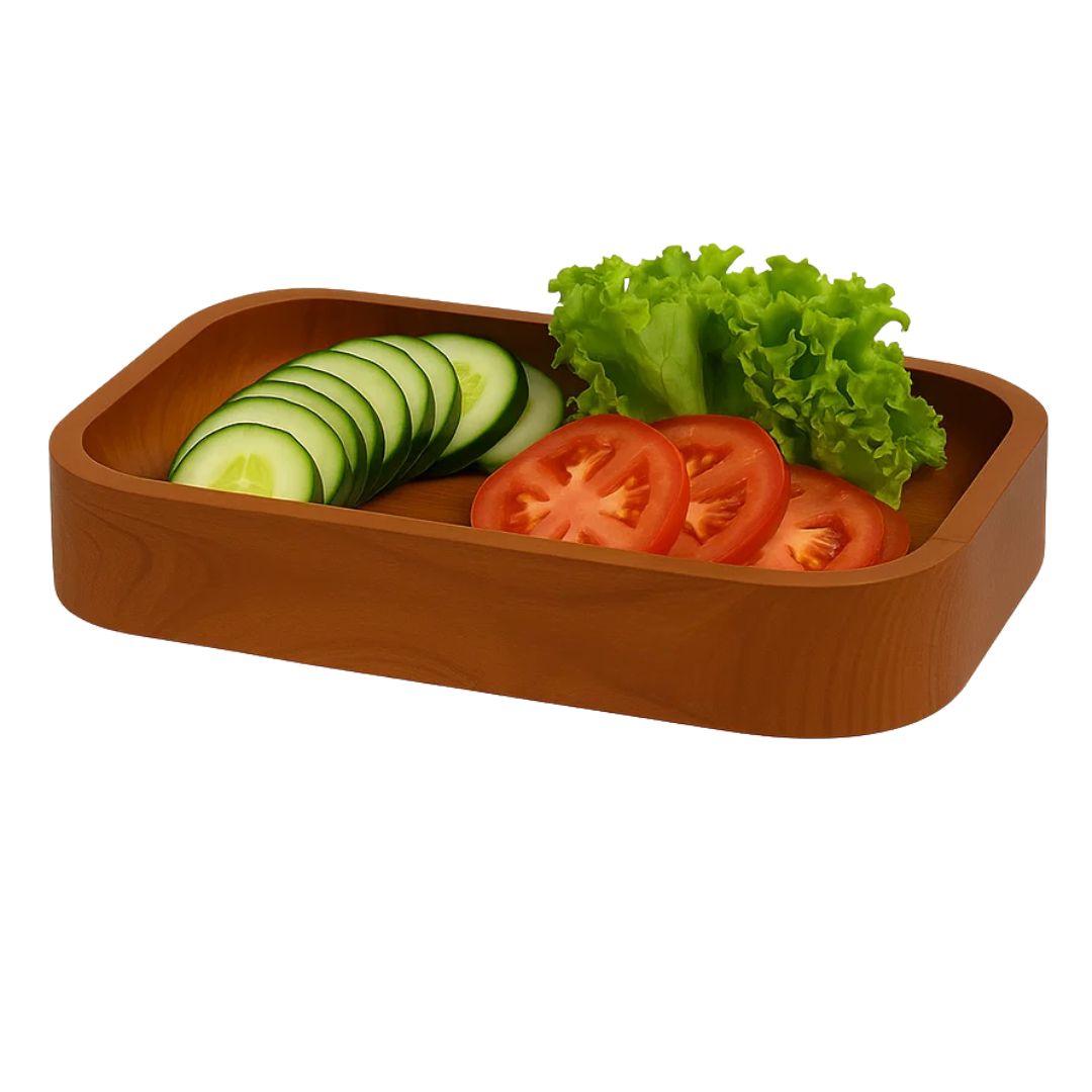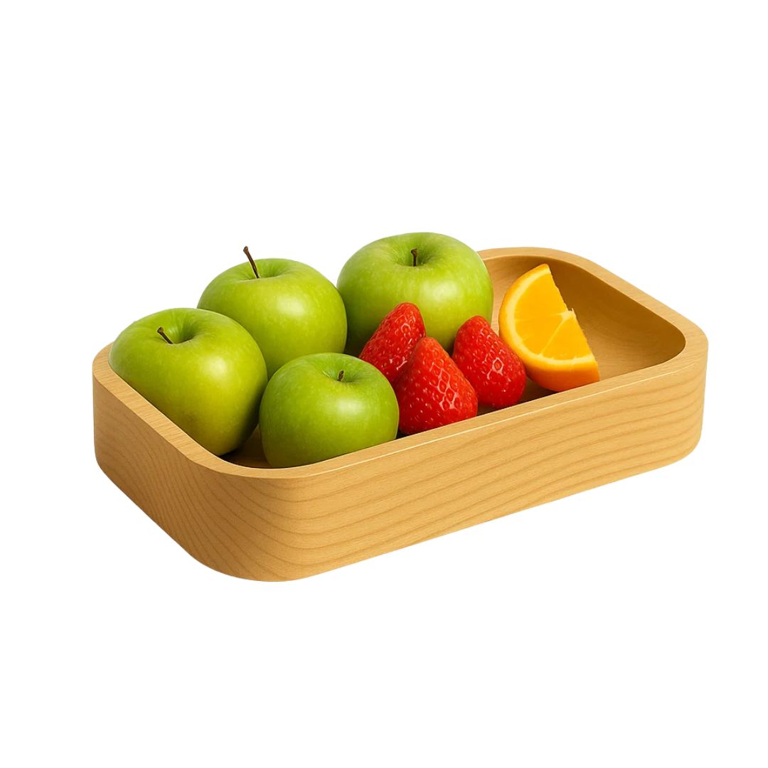 Đĩa gỗ chữ nhật bo góc là sự kết hợp hoàn hảo giữa vẻ đẹp tự nhiên của gỗ và thiết kế tối giản hiện đại. Các đường bo góc mềm mại giúp sản phẩm vừa sang trọng, vừa an toàn khi sử dụng. Bề mặt mịn, vân gỗ rõ nét mang lại cảm giác ấm áp và tinh tế, phù hợp cho cả trang trí lẫn sử dụng hàng ngày.