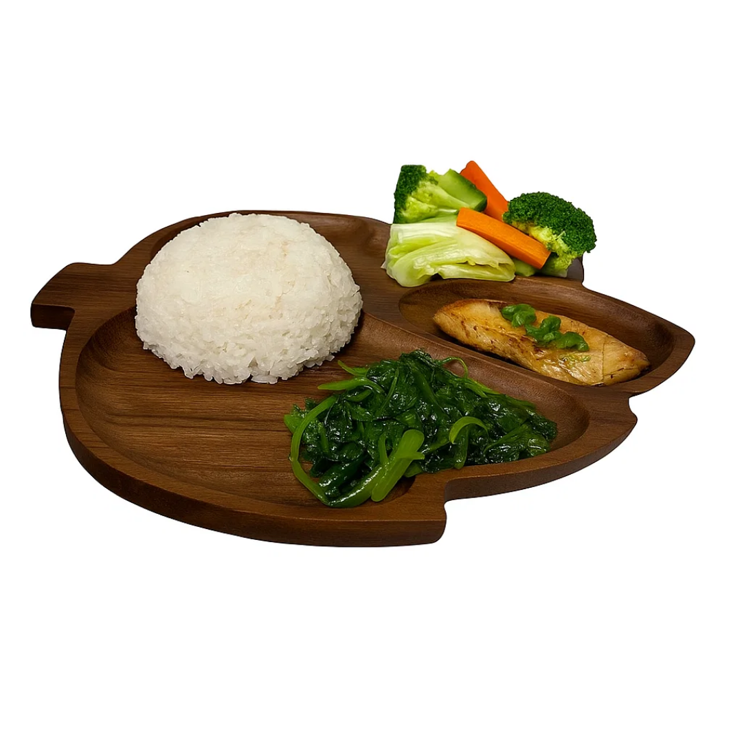 Đĩa gỗ hình lá được chế tác thủ công từ gỗ tự nhiên, mang vẻ đẹp mộc mạc nhưng đầy tinh tế. Thiết kế mô phỏng dáng lá atiso độc đáo, kết hợp vân gỗ mềm mại, tạo nên một tác phẩm nghệ thuật vừa hữu dụng vừa trang trí. Sản phẩm mang hơi thở thiên nhiên vào không gian sống, giúp bàn ăn hay góc decor trở nên ấm áp và nổi bật.