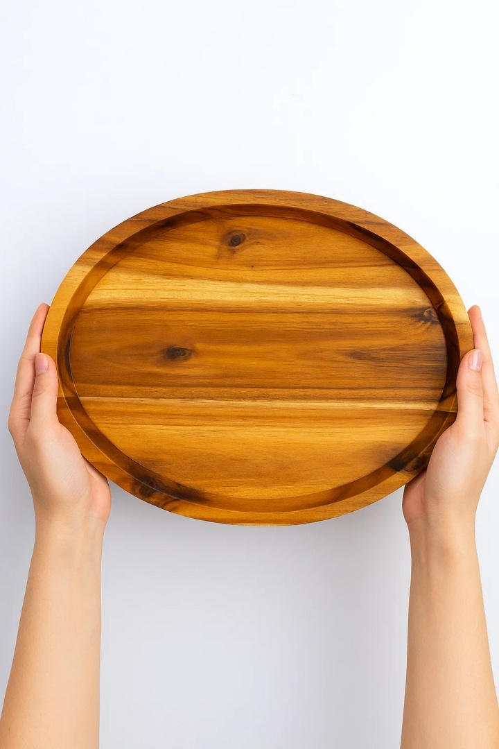 - Có thể sử dụng làm đĩa decor chụp ảnh sản phẩm hoặc kết hợp trong bộ bàn ăn gỗ thủ công.