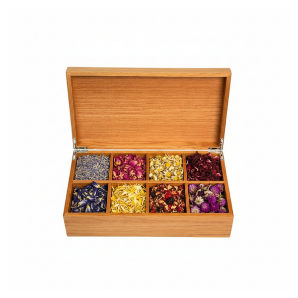 - Chia 8 ngăn nhỏ tiện lợi: Dễ dàng phân loại từng loại trà, hạt hoặc gia vị, giúp bàn trà luôn gọn gàng, tinh tế.