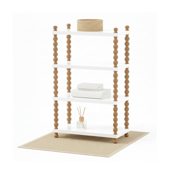 Kệ 4 tầng sơn mài trắng và gỗ cao su là món đồ decor tinh tế giúp không gian sống thêm gọn gàng và sang trọng. Thiết kế hiện đại kết hợp nét thủ công mộc mạc, kệ phù hợp để trưng bày vật decor, sách, chậu cây mini, nến thơm, hoặc các khay – lọ – khung ảnh trang trí.