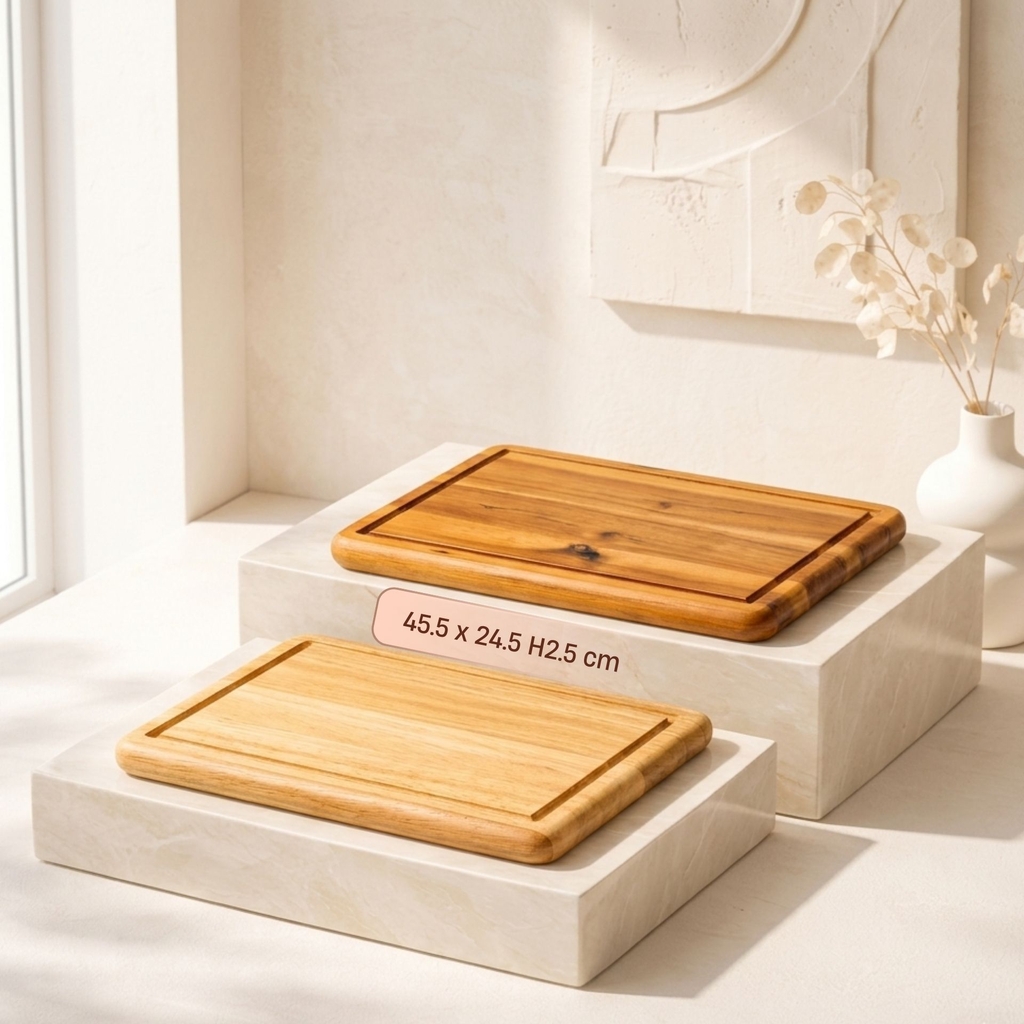 Thớt chữ nhật bo tròn 4 góc gỗ tràm/gỗ cao su tự nhiên là lựa chọn hoàn hảo cho những ai yêu thích phong cách sống xanh và tinh tế. Thiết kế tối giản, hiện đại với rãnh thoát nước tiện lợi giúp giữ cho bề mặt bếp luôn sạch sẽ. Bề mặt gỗ mịn, cứng chắc, an toàn cho thực phẩm, mang đến cảm giác sang trọng trong từng thao tác nấu nướng. Không chỉ là thớt gỗ nhà bếp, sản phẩm còn có thể dùng như khay gỗ decor phục vụ món ăn hoặc chụp ảnh ẩm thực cực kỳ thẩm mỹ.