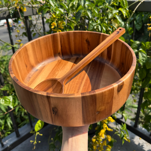 - Vân gỗ tự nhiên, màu nâu ấm – mỗi chiếc tô là một “phiên bản độc nhất”.