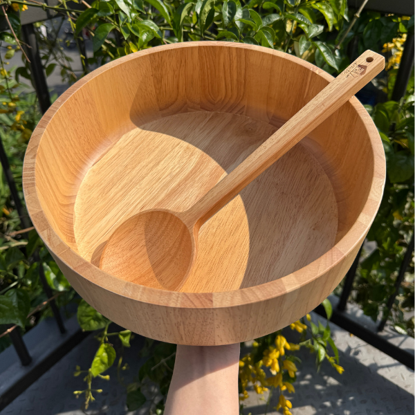 - Chất liệu gỗ tràm, gỗ cao su cao cấp: bền, chắc, an toàn với thực phẩm.